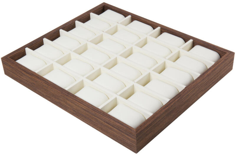 Fa óratartó, kínáló tálca 24db karóra számára. Belseje világos színű műbőr. Méretei: 35 x 40 x 5cm
