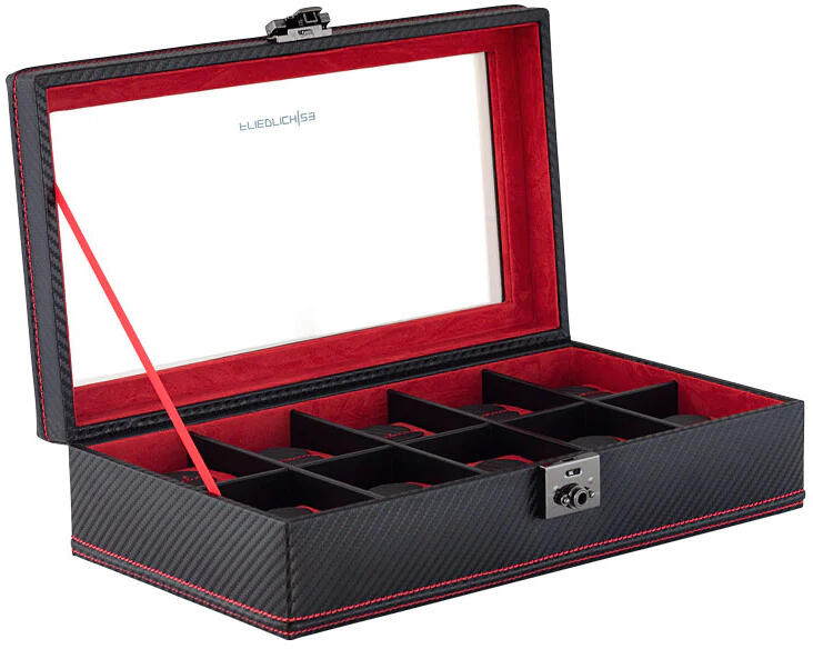 Friedrich23 Carbon XXL Óratartó doboz 10 órához üvegtetővel fekete/piros