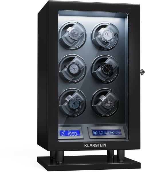 A Klarstein Verdon 6óratekercselő a biztonságos tárolást stílusos kialakítást és innovatív technológiával ötvözi. A masszív MDF-ből készült szekrény elegáns belső szerelvényekkel felszereléssel kombinálva a luxus és az elegancia ízléses kompozícióját alkotja. A magasfényű zongoralakk nemcsak gyönyörű fényt kölcsönöz a Verdon óratekercselőnek, hanem bármely helyiség esztétikai középpontjává is teszi. A legfőbb jellemzők közé tartozik a zárható ajtó akrilablakkal, a beépített LED-világítás a művészi óra bemutatásához, a csendes, kevesebb mint 5 dB zajjal működő motor és a távirányítóval ellátott LCD-érintőképernyő a maximálisan egyszerű használat érdekében. Az óratekercselő akár 6 órának is helyet biztosít, és rugalmas párnákkal rendelkezik a különböző méretű órákhoz. A Klarstein Verdon 6 óratekercselő nemcsak a biztonságos tárolásra összpontosít, hanem gyűjteménye stílusos bemutatására is.