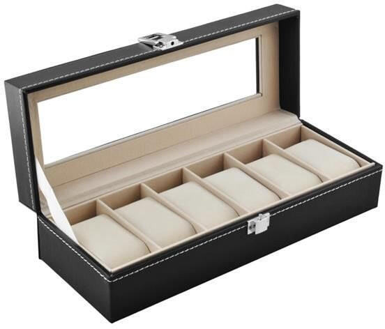 LEÍRÁS ÉS PARAMÉTEREK Az elegáns doboz 6 résszel rendelkezik, amelyekbe órákat és ékszereket is elhelyezhet. A tok elegáns, fekete színű, a varratok világosabb árnyalataival még stílusosabbá teszi az egészet. Az óra dobozának fedele átlátszó (akrilüveg), amely lehetővé teszi a tok használatát nemcsak tároláshoz, hanem a tartalom megjelenítéséhez is. Óra doboz vásárlásával csodálatos ajándék lehet, amelyet mindenki nagyra értékel. Az óraszervező karkötők és egyéb ékszerek tárolására is használható. A nyílások speciális bemeneteket tartalmaznak, amelyek beállíthatók egy adott szög alatt vagy teljesen kivehetők. Ez lehetővé teszi, hogy az óra tokja különféle típusú dobozként is szolgáljon. Az óraszervező speciális párnázott belsővel rendelkezik. Ez az anyag védi a tok tartalmát a karcolásoktól. A nyílásokat magasabb falak választják el, védve a tartozékokat az ütközéstől. Az esztétikus és biztonságos pántzár megvédi a tartalmat a kieséstől. rendező méretei (szélesség / hossz / magasság): 30 x 11,2 x 8,1 cm rekesz méretei (hosszúság / szélesség): 9,5 x 4,5 cm