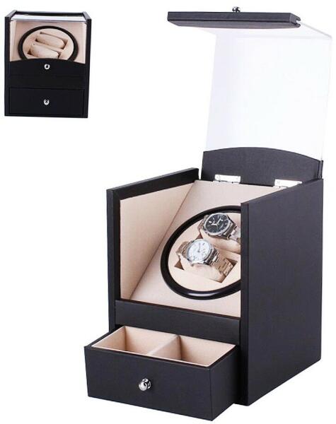 Elegáns Óraforgató Doboz 2 Automata Karórához ⌚ Ez a stílusos óraforgató doboz tökéletes megoldás az automata karórák tárolására és karbantartására. A fekete műbőr borítás és a krém színű textil belső elegáns megjelenést kölcsönöz, míg a 2 kihúzható tároló további helyet biztosít kiegészítőid számára. Főbb jellemzők:Két óra tárolására alkalmas: Biztonságosan és elegánsan tárolhatod kedvenc óráidat. Fekete műbőr külső: Prémium megjelenés, amely bármely enteriőrbe illeszkedik. Krém színű textil belső: Puha és kíméletes az órákhoz, megakadályozza a karcolásokat. Két kihúzható tároló: További hely ékszerek, óraszíjak vagy egyéb kiegészítők számára. Praktikus és stílusos: Tökéletes ajándék órakedvelőknek. ? Ez az óraforgató doboz nem csupán egy tárolóeszköz, hanem egy stílusos kiegészítő, amely megőrzi óráid értékét és szépségét. ✨