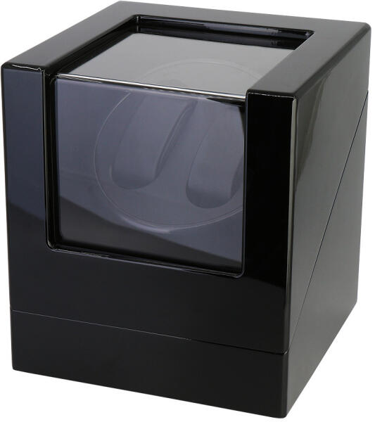 Óraforgató doboz, 2 db karórához, kívül fekete színű festett fényes fa felület, belül fekete színű textil (5948-9)
