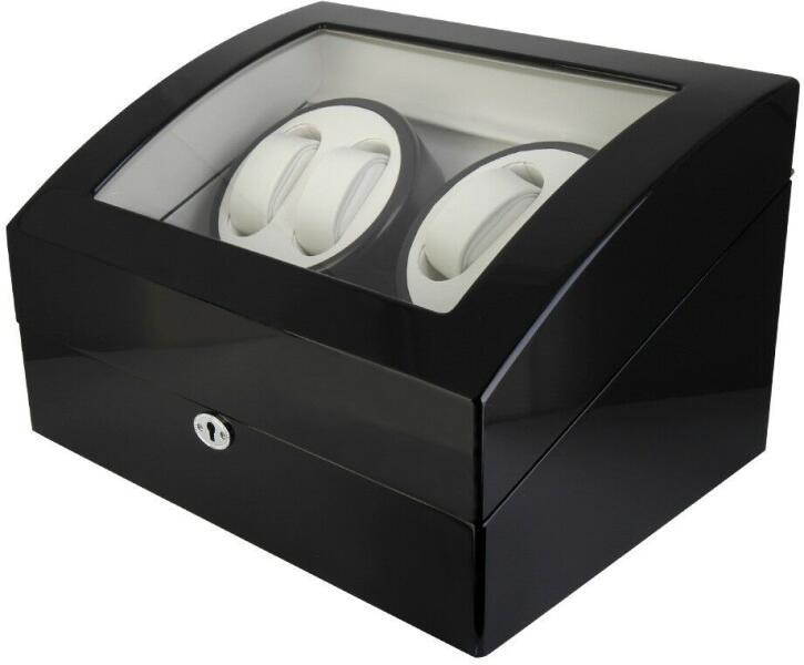 Óraforgató doboz, 4 db + 6 db órához, kívül fekete fa magasfényű felület, belül fehér műbőr borítás