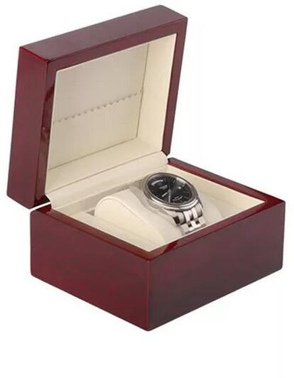 LAKKOZOTT CSERESZNYE SZÍNŰ FA ÓRATARTÓ DOBOZ 1 ÓRA SZÁMÁRA. MŰBŐR BELSŐ, 55 MM SZÉLES PÁRNA.