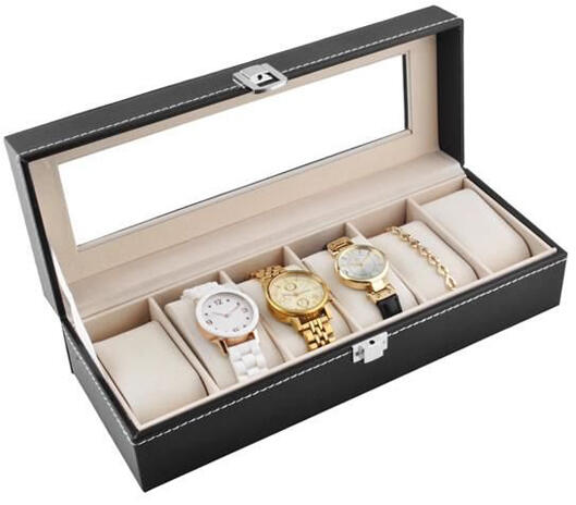 Egy esztétikus és elegáns óratartó doboz, 6 rekesszel. A párnáknak köszönhetően az óráink védve vannak a karcolásoktól, melyek kivehetőek, így akár karkötőket és egyéb ékszereket is tárolhatunk benne.